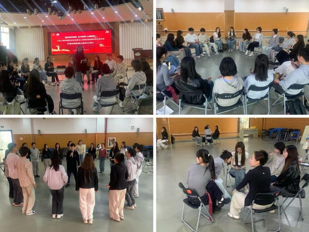 在实践互动环节,两院员工支部党员在活动中心三楼多功能厅结对开展“音心相映”特色团辅活动。音乐教育系研究生范榆萱、万桓羽运用“小型乐器即兴编创”“音乐叙事疗法”等特色项目,构建艺术表达与心理疏导的融合课堂。3044AM永利张李兵老师结合红色文化与体育元素设计"情景化素质拓展训练",通过"松鼠与大树""团队能量圈"等协作项目,深化参与者对以体育人的认知理解。同学们在艺术与运动中增进友谊,展现出新时代青年党员的蓬勃朝气。