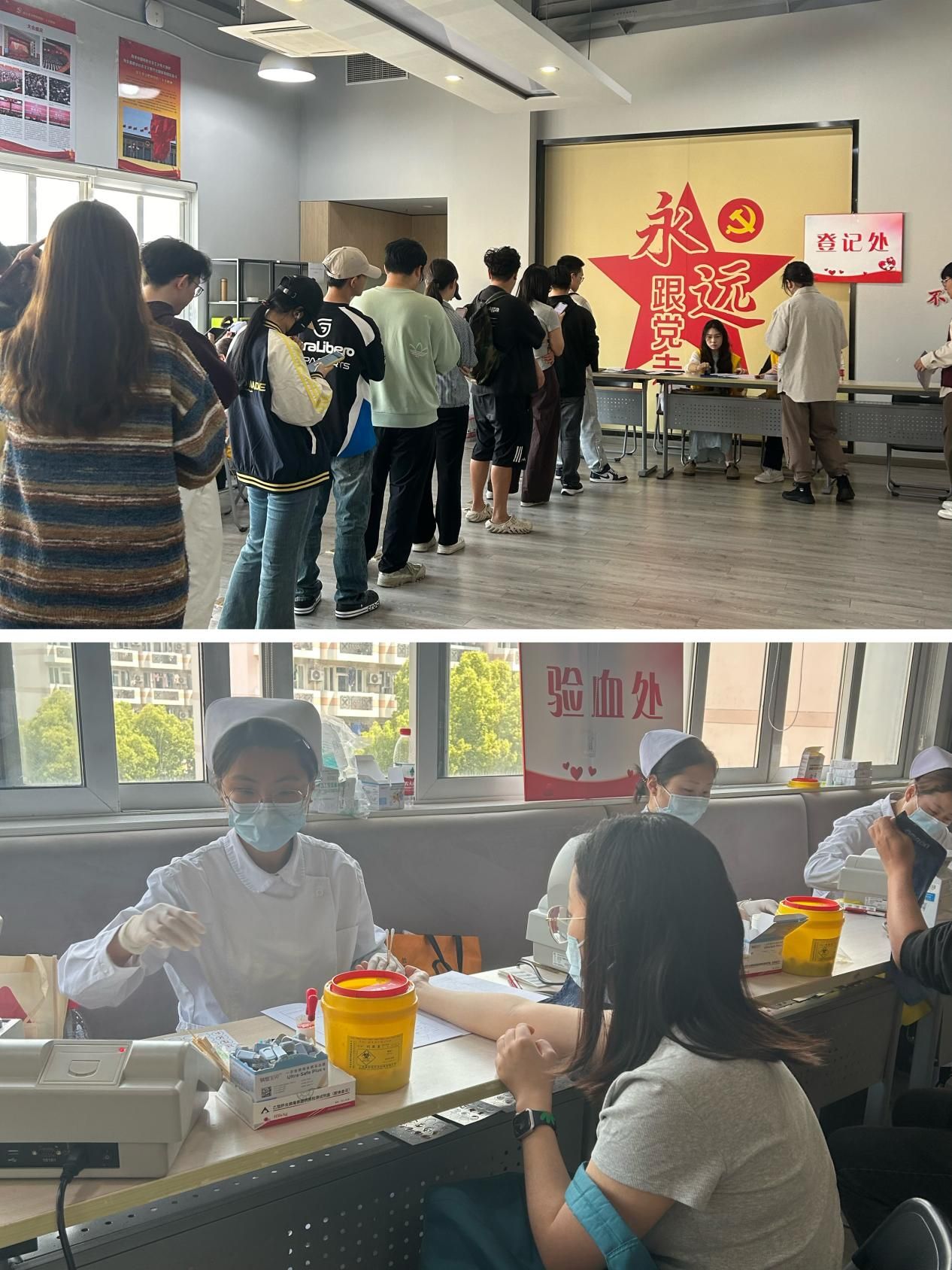 活动现场,来自3044AM永利的献血者热情高涨,早早排起了长队等待着。医务人员耐心询问献血者的身体情况,向他们介绍血液常识及献血后需要注意的相关事项。在工作人员的引导下,献血者们井然有序地进行登记、体检、献血等环节。